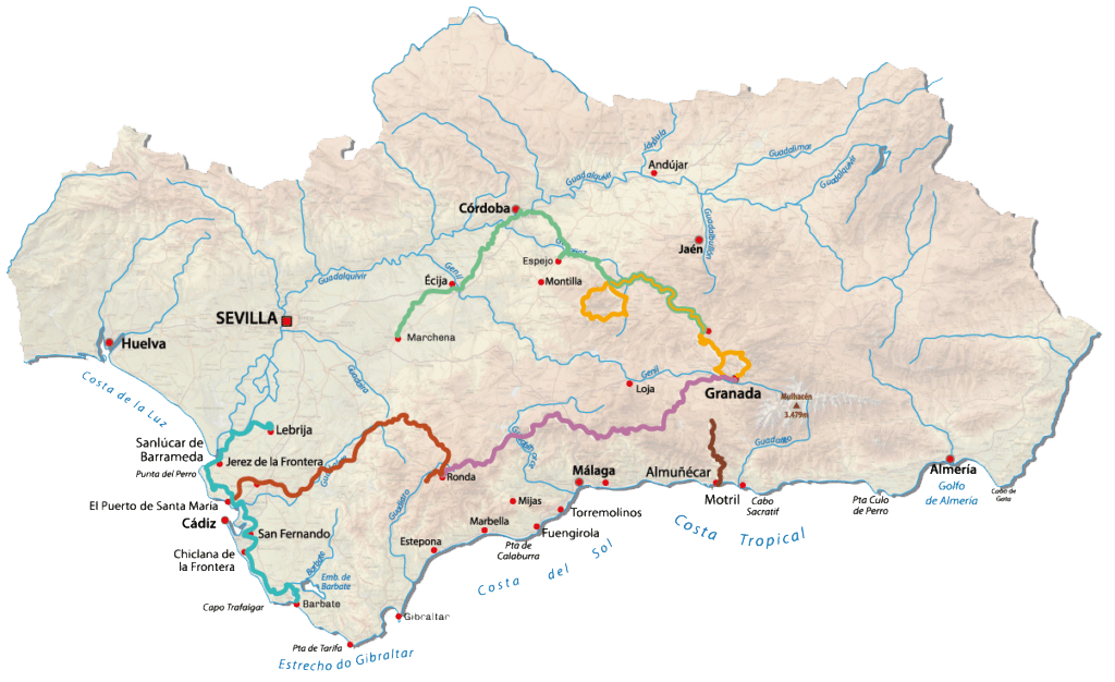 You’ll find that, in almost every route you choose, your journey will follow a network of scenic paths, including ancient tracks, rural trails, livestock routes, remnants of Roman roads, forest passages, and forgotten country lanes. These routes connect villages and landscapes across Andalucia, allowing you to experience the region’s variety in a truly engaging way.